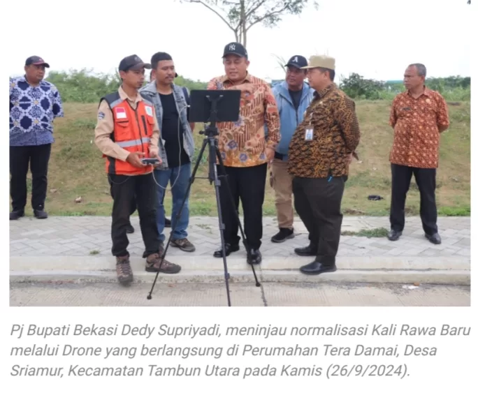 Kabupaten Bekasi,potretpublik.co.id – Untuk memastikan kegiatan normalisasi berjalan dengan baik, Pj Bupati Bekasi Dedy Supriyadi meninjau pengerukan Kali Rawa Baru di Perumahan Tera Damai Desa Sriamur, Kecamatan Tambun Utara, pada Kamis (26/9/2024).