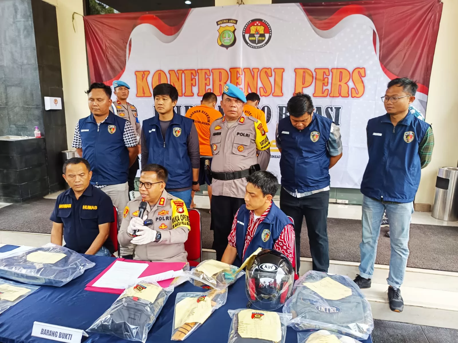 Wakapolres Metro Bekasi AKBP Saufi Salamun didampingi Kasat Reskrim Kompol Sang Ngurah Wiratama menyampaikan pada saat conference pers di Mapolres Metro Bekasi, pada Jumat25/10/2024 siang.