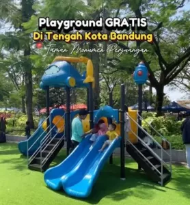 Selain itu, ada juga kawasan berikutnya yang menyediakan berbagai wahana playground bagi si kecil. Mulai dari ayunan, perosotan, jungkat-jungkit, sampai alat gym semuanya bisa digunakan dengan bebas. Bahkan, tempat ini sangat cocok untuk diabadikan karena setiap spotnya begitu Instagramable.