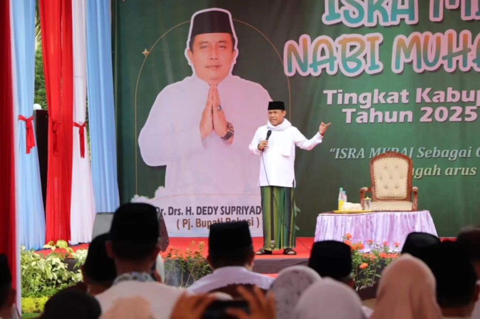 Pj Bupati Bekasi, Dedi Supriyadi, dalam sambutannya menyampaikan bahwa Isra Mi’raj merupakan perjalanan spiritual Rasulullah SAW yang mengandung nilai-nilai luhur dan tetap relevan sepanjang zaman. Ia menekankan pentingnya menjaga hubungan dengan Allah SWT melalui ibadah salat serta mempererat silaturahmi demi menciptakan kehidupan masyarakat yang harmonis.