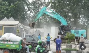 Karawang || Potretpublik – Pemerintah Daerah Kabupaten Karawang bersama PT Kereta Api Indonesia (KAI) menertibkan kawasan Taman Ade Irma, Kamis (3/7/2025).