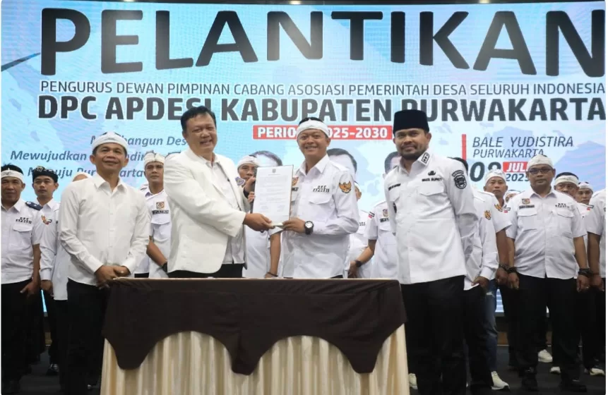 Purwakarta || Potretpublik Asosiasi Pemerintah Desa Seluruh Indonesia (Apdesi) Kabupaten Purwakarta resmi dilantik, pelantikan tersebut berlangsung di Aula Yudhistira Komplek Setda Kabupaten Purwakarta, Bupati Purwakarta, Saepul Bahri Binzein (Om Zein), menghadiri pelantikan Dewan Pimpinan Cabang (DPC) Apdesi Kabupaten Purwakarta periode 2025-2030. Selasa (8/7/2025)