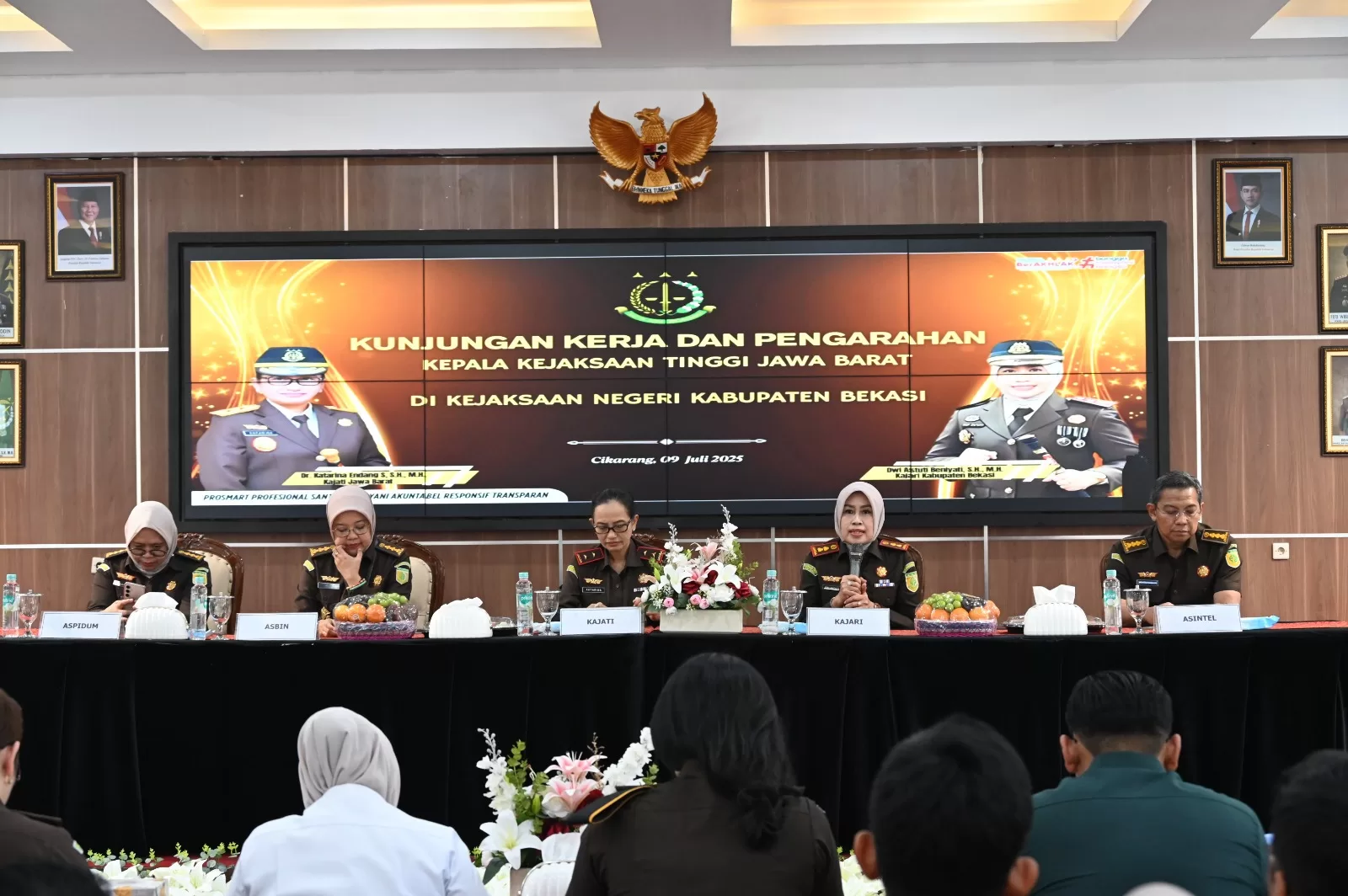 Kabupaten Bekasi || Potretpublik – Kepala Kejaksaan Tinggi Jawa Barat Katarina Endang Sarwestri, S.H.,M.H melakukan rangkaian kunjungan kerja ke Kejaksaan Negeri Kota Bekasi dilanjutkan ke Kejaksaan Negeri Kabupaten Bekasi. Rabu (09/07/25)