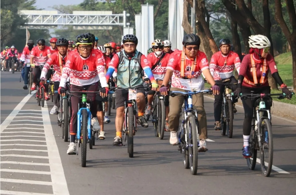 Kabupaten Bekasi || Potretpublik – Ribuan warga antusias mengikuti Fun Bike dan Extreme Cross Country yang mengambil titik start di Plaza Pemkab Bekasi, Cikarang Pusat, pada Minggu (10/8/2025).