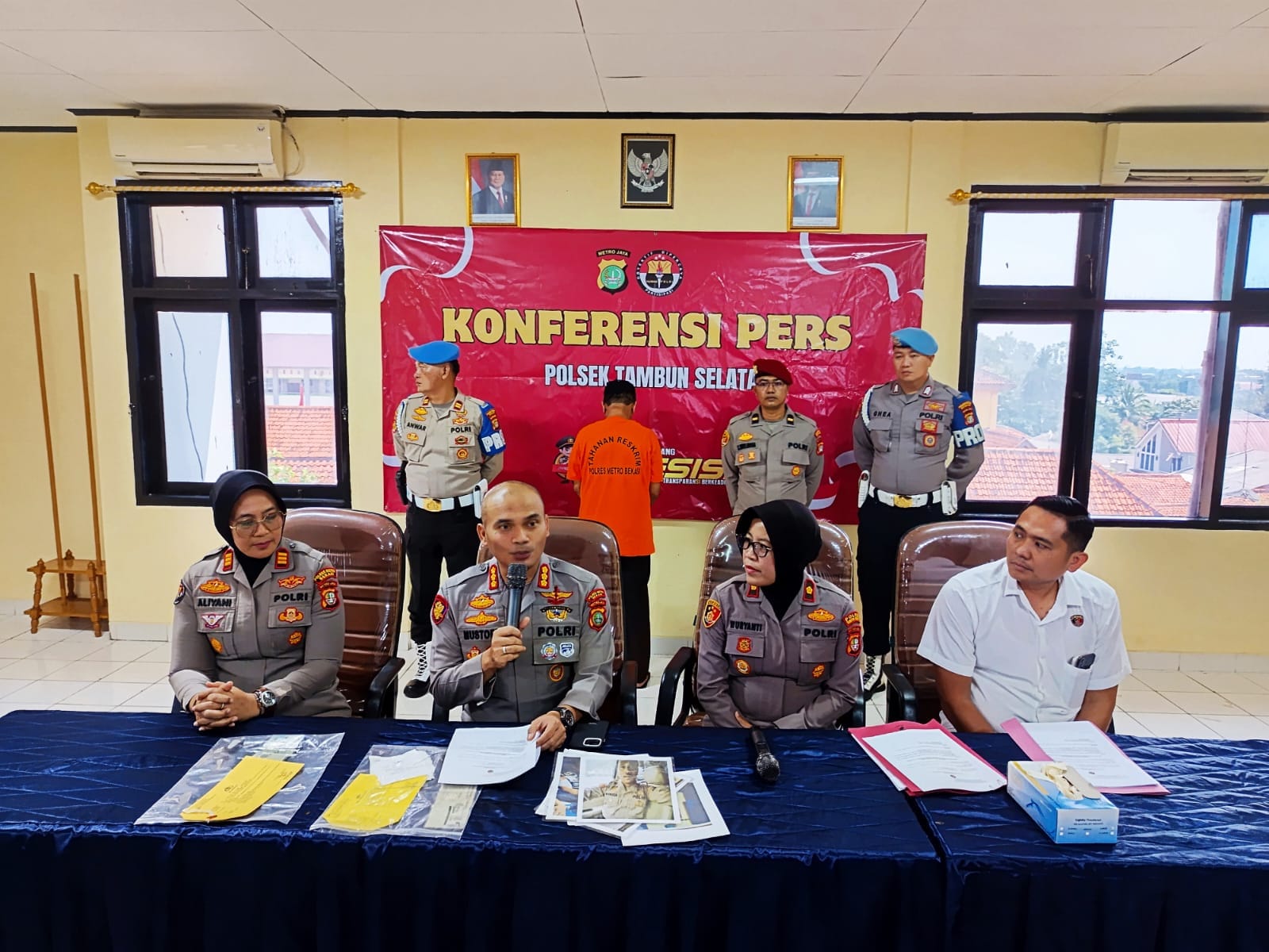 Kapolres Metro Bekasi, Kombes Pol Mustofa, S.I.K., M.H., menjelaskan kasus ini dalam konferensi pers di Mapolsek Tambun Selatan, Senin (15/9/2025). Turut hadir jajaran pejabat utama Polres Metro Bekasi bersama Kapolsek Tambun Selatan, Kompol Wuryanti