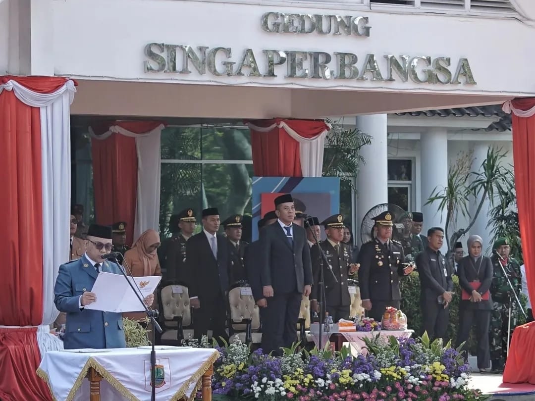Karawang || Potretpublik – Upacara Peringatan Hari Kesaktian Pancasila tingkat Kabupaten Karawang Tahun 2025 berlangsung khidmat dengan mengusung tema Pancasila Perekat Bangsa Menuju Indonesia Raya bertempat di lapangan Plaza Pemda Karawang.Rabu (1/10/25).