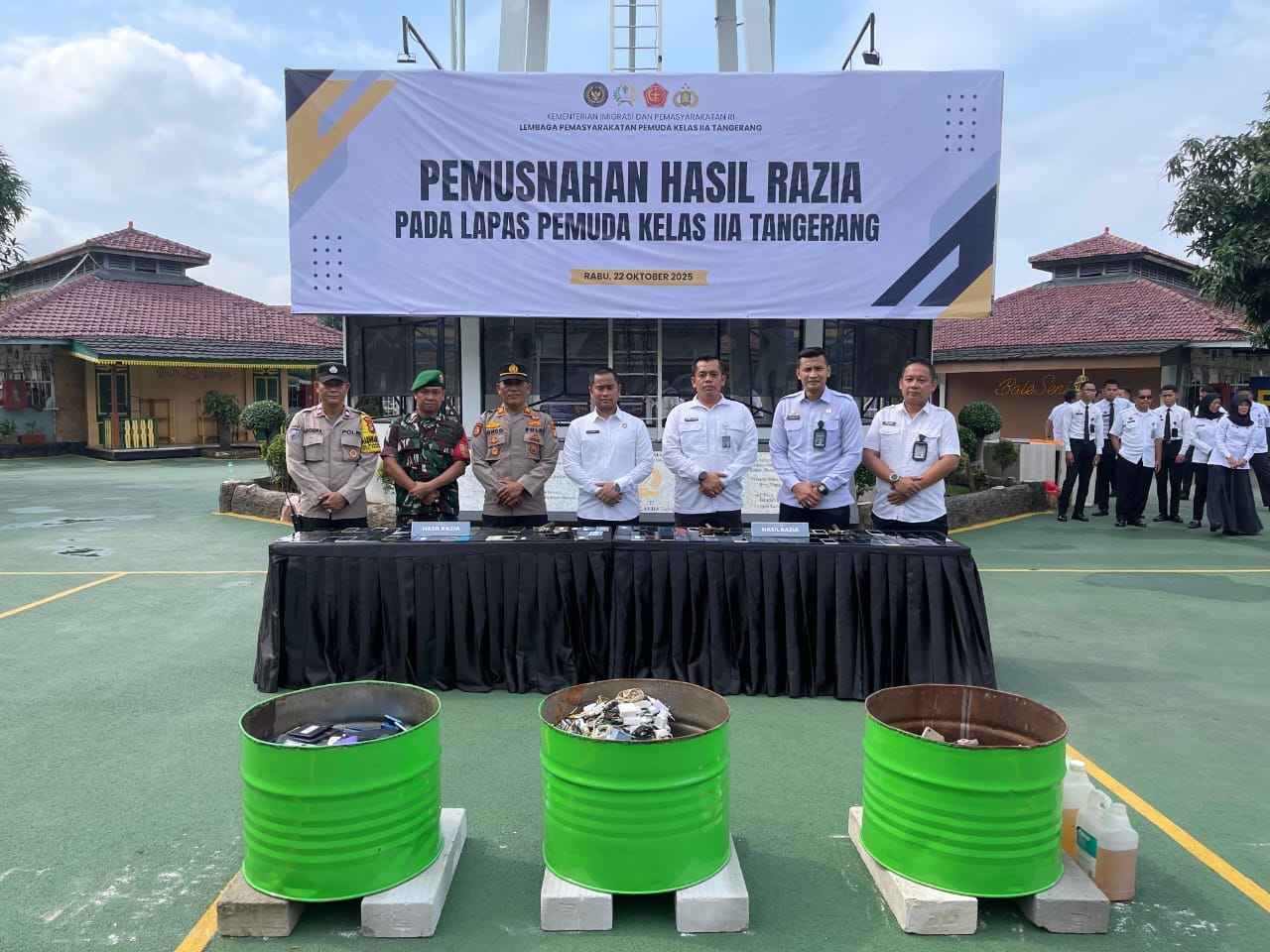 Kota Tangerang || Potretpublik — Lembaga Pemasyarakatan (Lapas) Pemuda Kelas IIA Tangerang melaksanakan kegiatan pemusnahan hasil razia selama periode bulan Januari hingga Oktober 2025, sebagai bentuk komitmen nyata dalam mewujudkan lingkungan pemasyarakatan yang bersih dari handphone, pungutan liar, dan narkoba (Halinar).