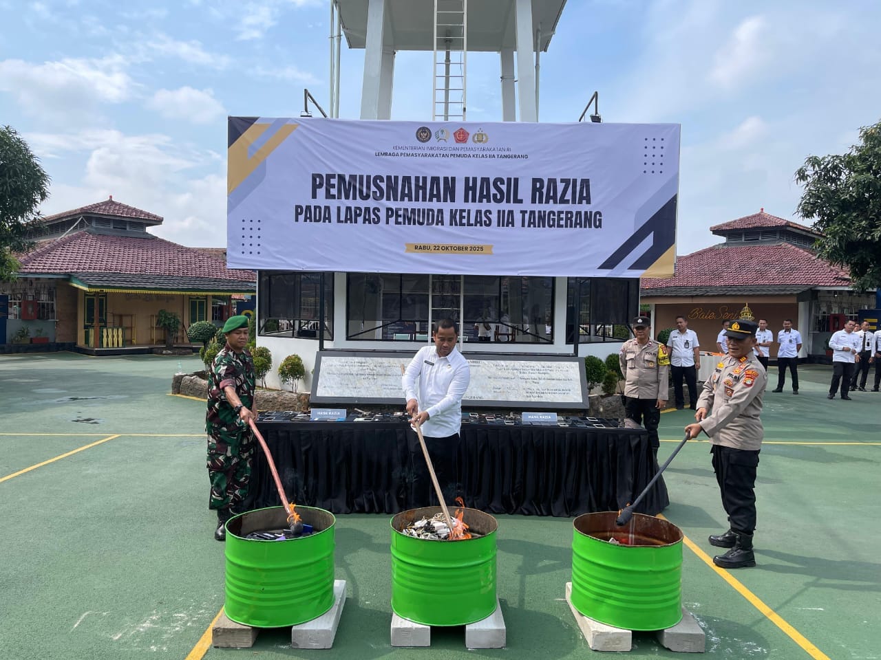 Kegiatan pemusnahan dipimpin langsung oleh Kepala Lapas Pemuda Kelas IIA Tangerang, Yogi Suhara bersama Wakapolsek Tangerang, Binamas Polsek Tangerang serta Babinsa Koramil 01 Tangerang. Langkah ini juga menjadi tindak lanjut dari penandatanganan Komitmen Bersama Petugas Pemasyarakatan dalam Memberantas Narkoba, Handphone, dan Barang Terlarang (Halinar) yang telah dilaksanakan sebelumnya oleh seluruh jajaran Pemasyarakatan.