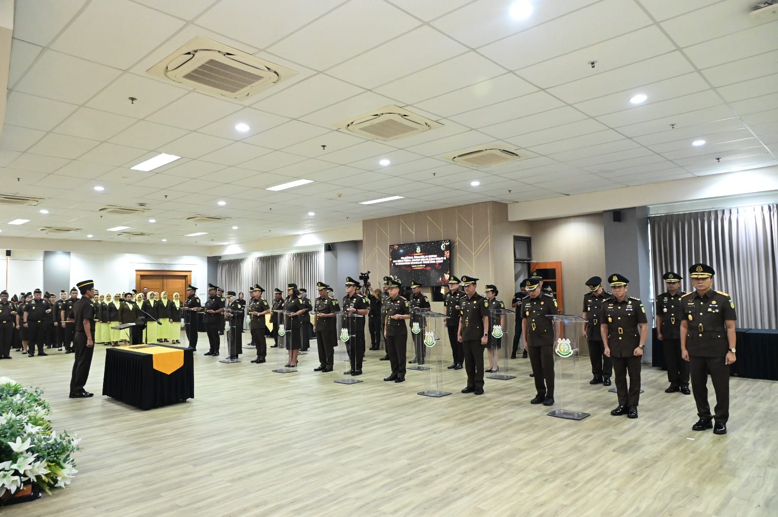 Bandung || Potretpublik – Kepala Kejaksaan Tinggi Jawa Barat Dr. Hermon Dekristo, S.H., M.H melantik pejabat eselon II dan eselon III di lingkungan Kejaksaan Tinggi Jawa Barat bertempat di Aula R. Soepeapto Lantai 8 Gedung Kejaksaan Tinggi Jawa Barat.