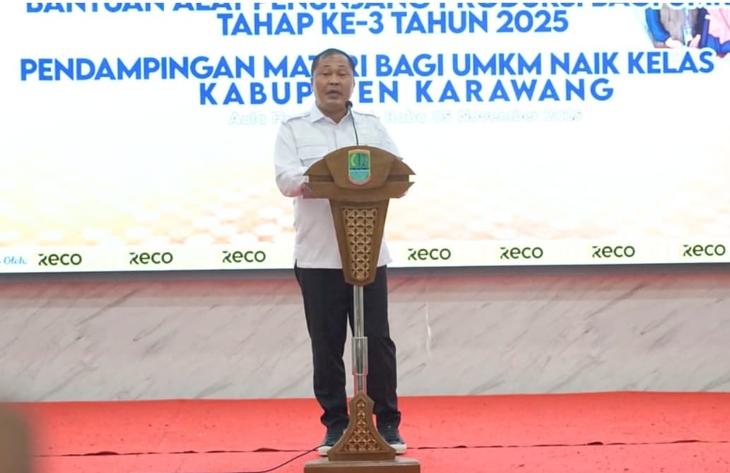 Karawang || Potretpublik – Pemerintah Daerah Kabupaten Karawang melalui Dinas Koperasi dan UKM salurkan bantuan alat penunjang produksi untuk para pelaku usaha sebagai bentuk komitmen pemerintah dalam membantu Usaha Mikro, Kecil, dan Menengah (UMKM) lokal agar bisa naik kelas. Bertempat di Aula Husni Hamid, Rabu (5/11/25).