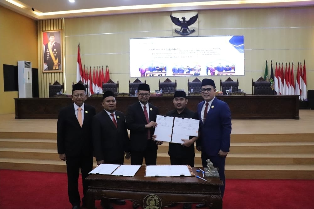 Selain penandatanganan Nota Kesepakatan KUA-PPAS 2026, rapat paripurna juga menetapkan dua Raperda strategis, yakni Perubahan atas Perda Nomor 1 Tahun 2020 tentang Pedoman Pengelolaan Barang Milik Daerah, serta Raperda tentang Penyelenggaraan Perlindungan Perempuan dan Anak Korban Kekerasan.