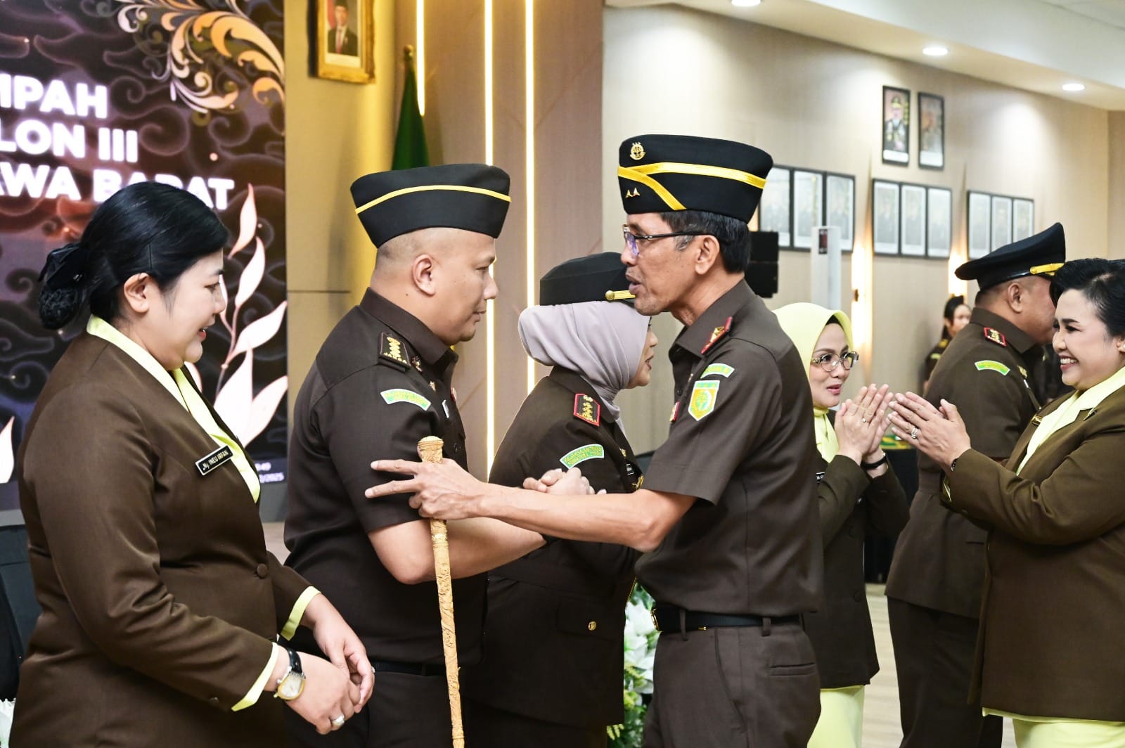 Bandung || Potretpublik – Kepala Kejaksaan Tinggi Jawa Barat Dr. Hermon Dekristo, S.H., M.H. melantik Kepala Kejaksaan Negeri Kota Bandung Abun Hasbulloh Syambas, S.H., M.H. dan Kepala Kejaksaan Negeri Kota Sukabumi Siti Holijah Harahap, S.H., M.H. Bertempat di Aula R.Soeprapto Kejaksaan Tinggi Jawa Barat. Rabu (17/12/25).