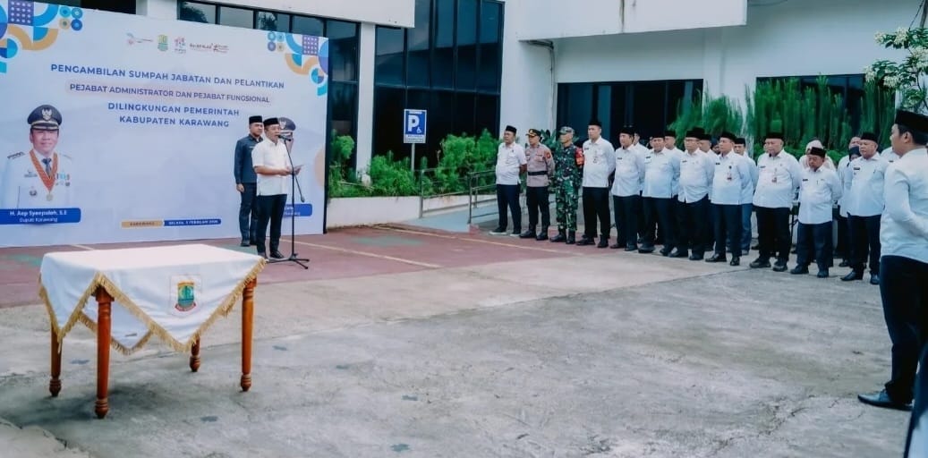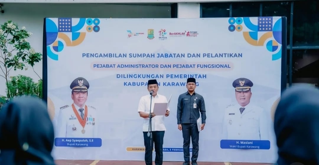 Pengambilan sumpah jabatan dan pelantikan tersebut sesuai dengan Surat Keputusan Bupati Karawang Nomor: 800.1.3.3/Kep.147-BKPSDM/2026 Tentang Pengangkatan Pegawai Negeri Sipil Dari dan Dalam Jabatan Administrator di Lingkungan Pemerintah Kabupaten Karawang.