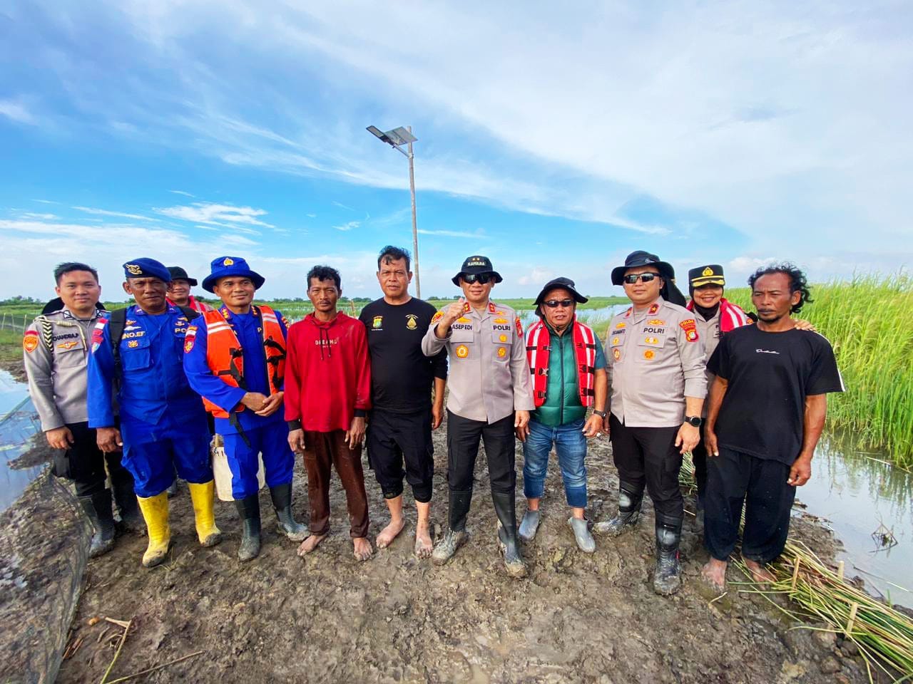 Kegiatan peninjauan berlangsung di Tambak Ikan Kampung Begedor, Desa Pantai Harapan Jaya, dan dipimpin langsung oleh Kapolres Metro Bekasi KBP Sumarni, S.I.K., S.H., M.H., didampingi para pejabat utama Polres Metro Bekasi serta jajaran Polda Metro Jaya.