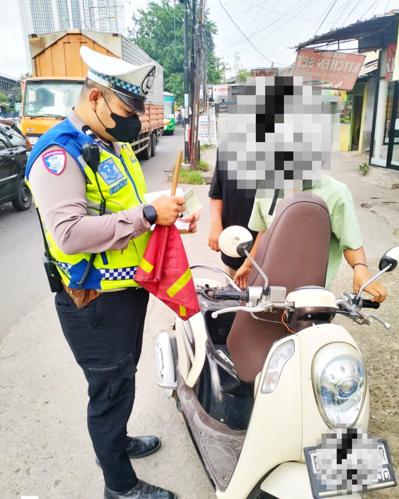 Peristiwa bermula saat petugas tengah melaksanakan pengaturan arus lalu lintas sore hari di sekitar Pos Lantas 08 Gemalapik. Dalam kegiatan tersebut, petugas menghentikan satu unit sepeda motor roda dua karena penumpangnya tidak menggunakan helm, yang merupakan pelanggaran lalu lintas.