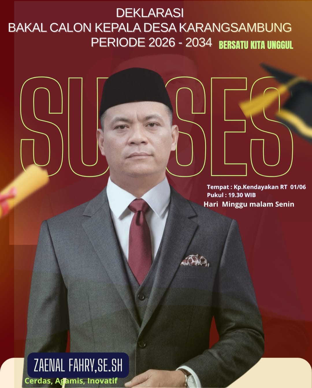 Arus dukungan atau suport terhadap figur pemimpin baru di Desa tersebut mulai menguat. Hal ini ditandai dengan laksanakannya deklarasi resmi Zaenal Fahri, S.E sebagai Bakal Calon Kepala Desa (Bacalon Kades) Karangsambung yang digelar pada Minggu (12/4/2026) di kediamannya, Kampung Rengas Bandung, RT 01/RW 03 Desa Karangsambung.